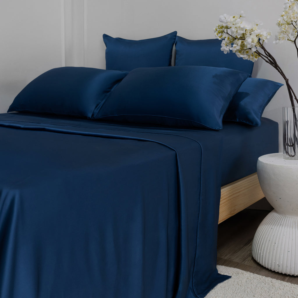 100% Mulberry Silk Flat Sheet - 22 Momme | Navy Blue