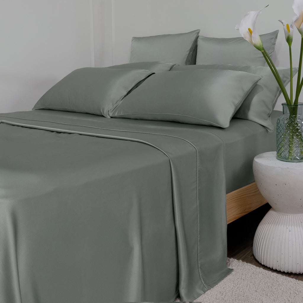 100% Mulberry Silk Flat Sheet - 22 Momme | Sage Green