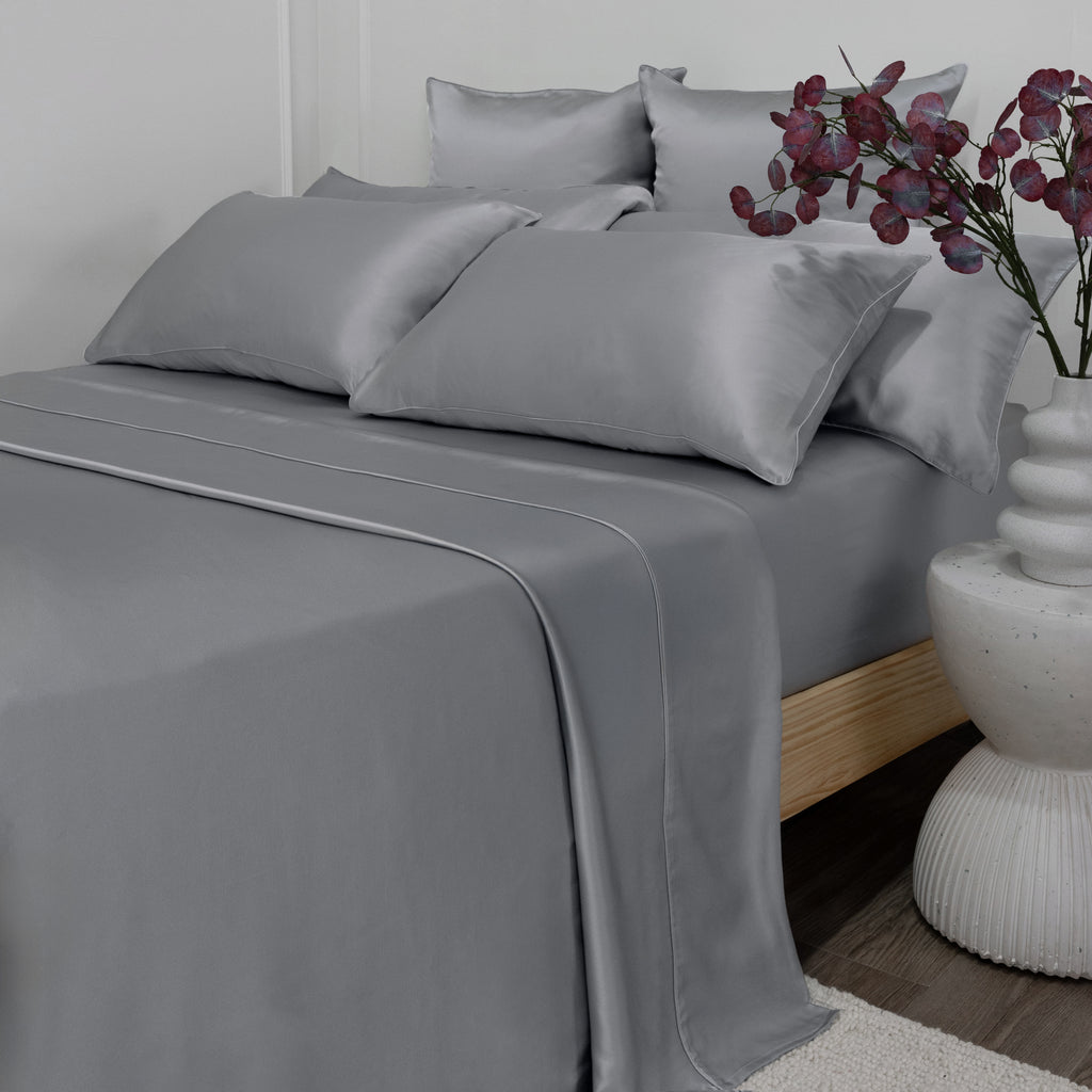 100% Mulberry Silk Flat Sheet - 22 Momme | Silver Grey