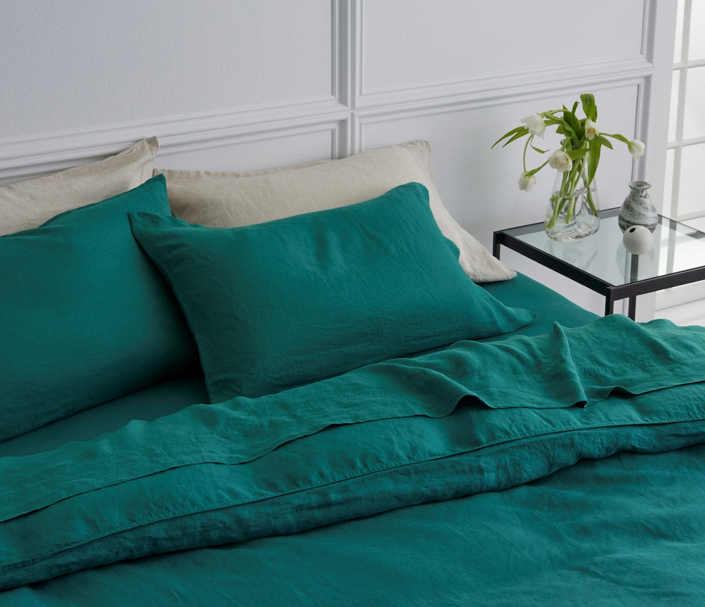 100% French Flax Linen Quilt Cover Set | Emerald Green