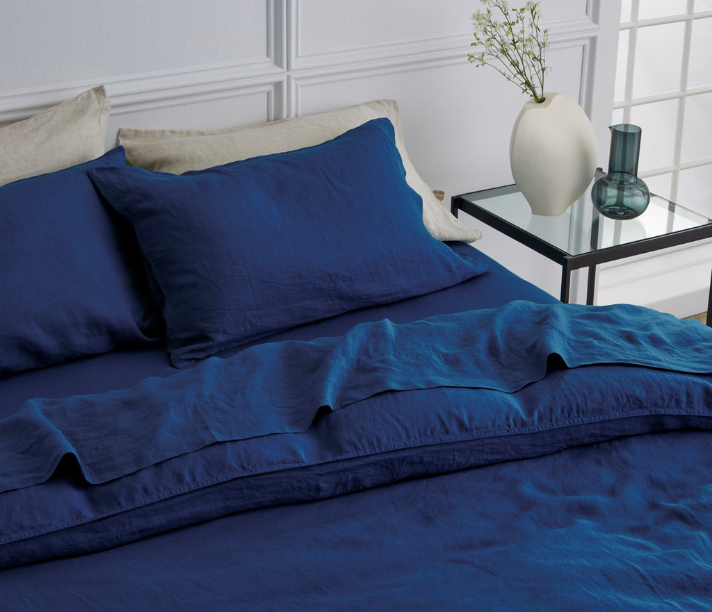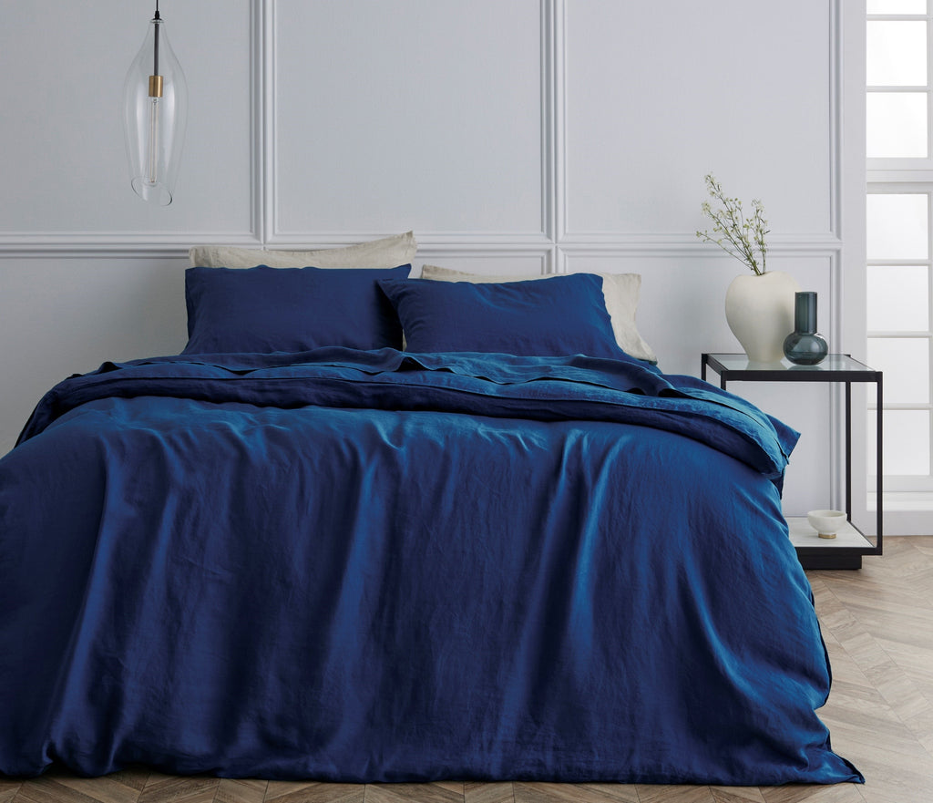 100% French Flax Linen Quilt Cover Set | Navy Blue