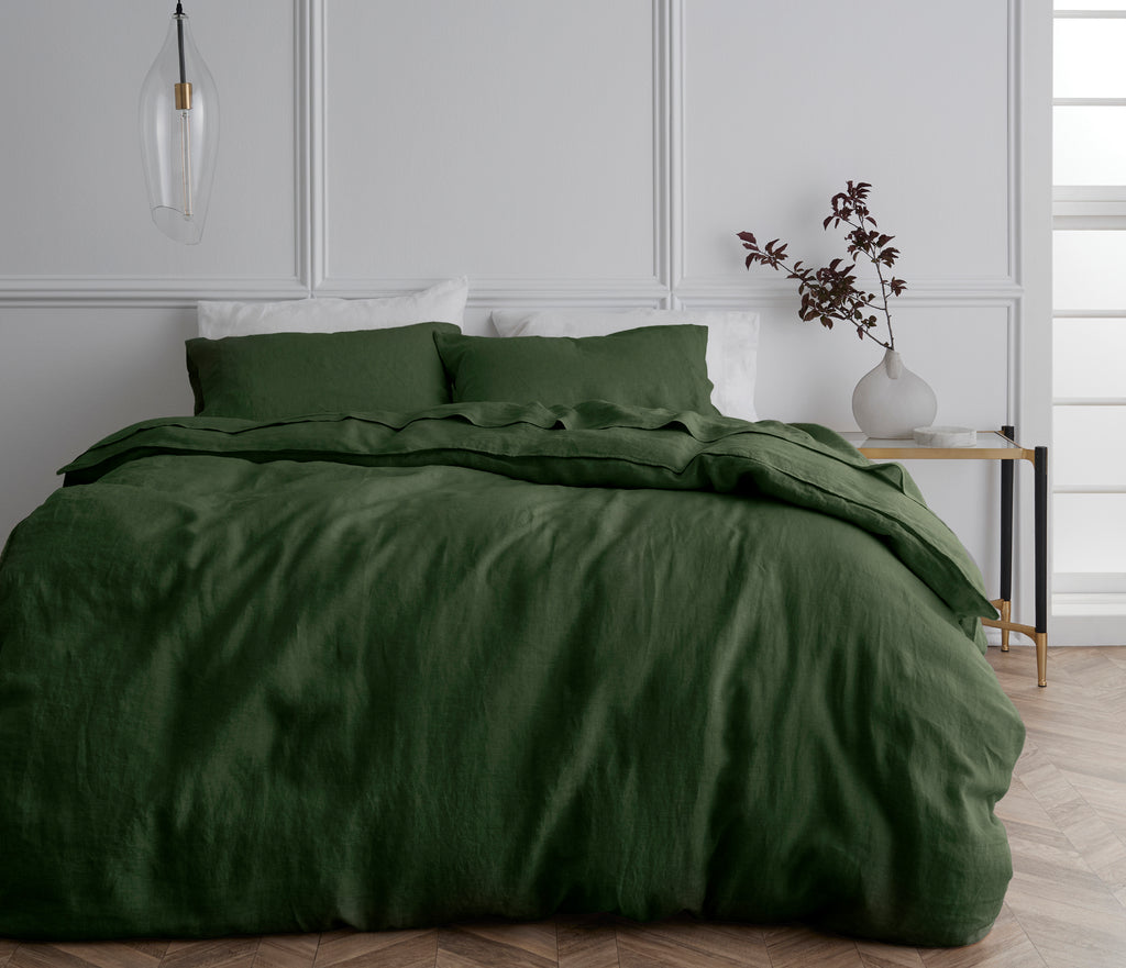 100% French Flax Linen Quilt Cover Set | Olive