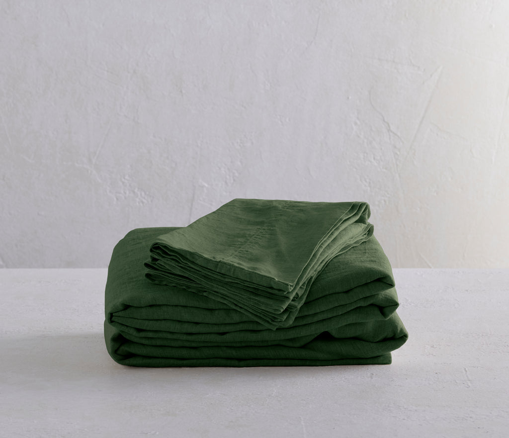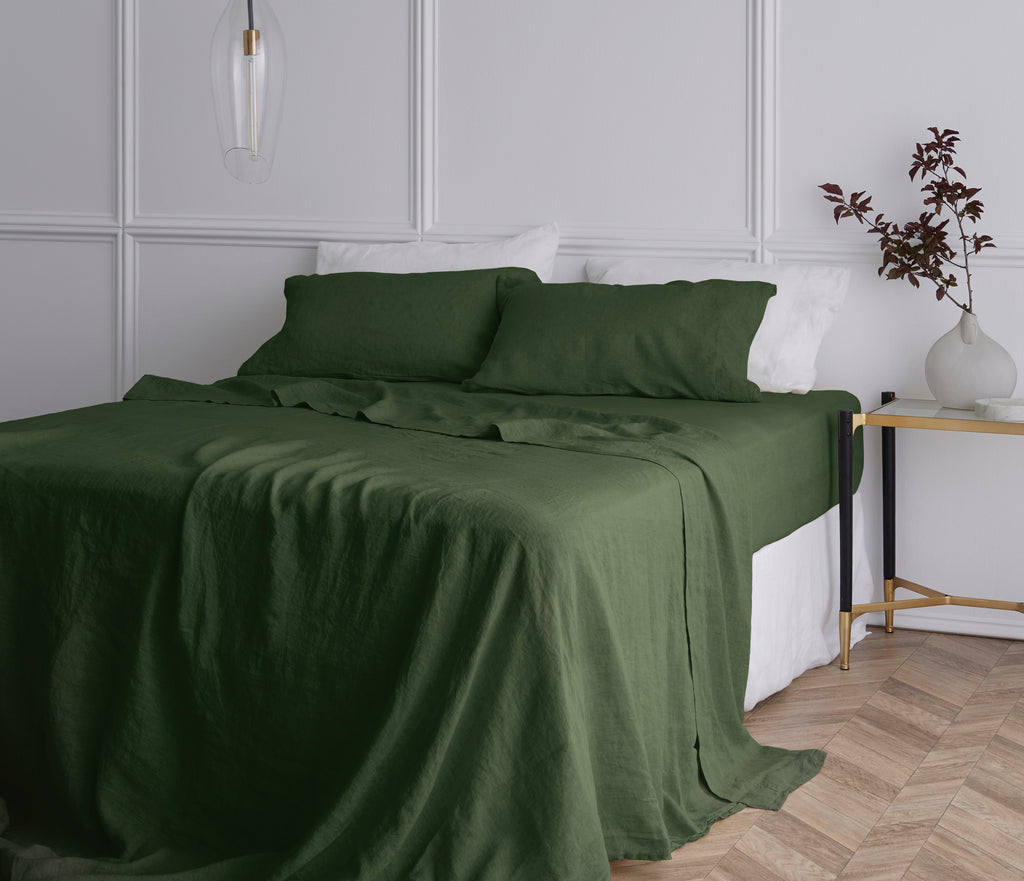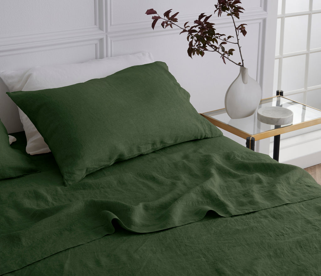100% French Flax Linen Quilt Cover Set | Emerald Green
