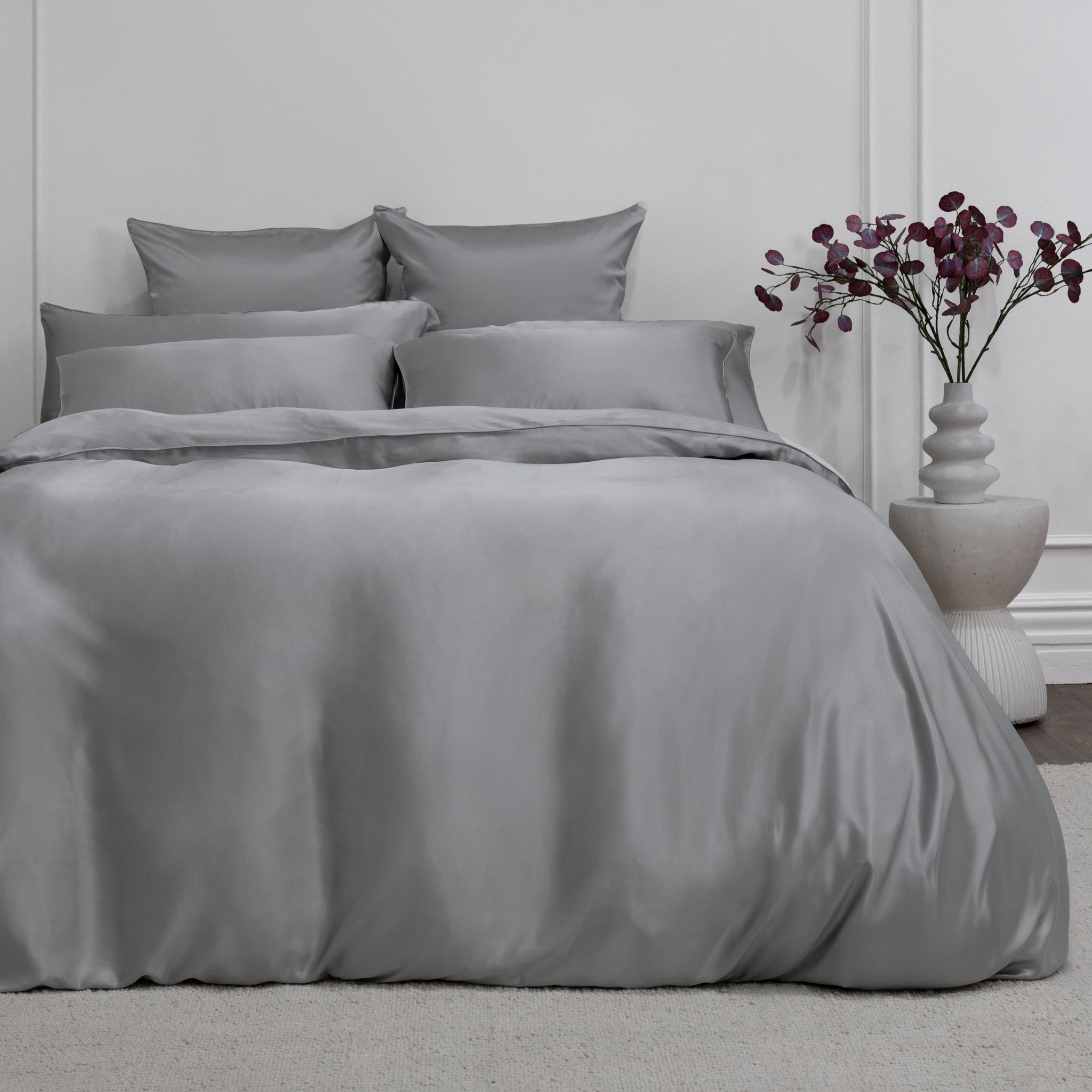 100% Mulberry Silk Quilt Cover Set - 22 Momme | Silver Grey